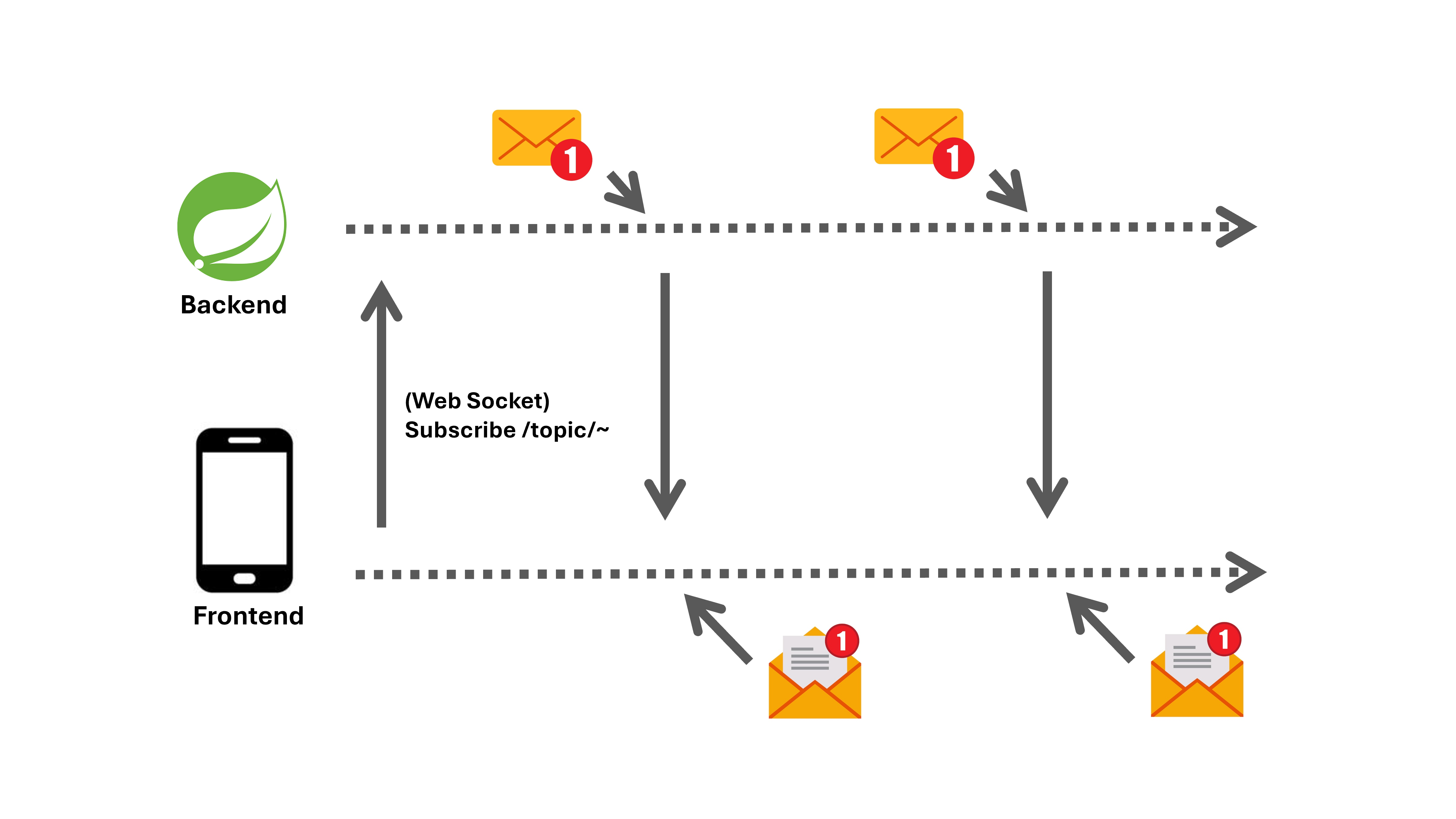 - 서버: Spring WebSocket + STOMP 메시징 프로토콜